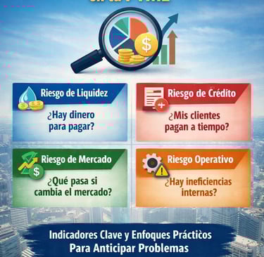 Este artículo explica cómo las PYMEs pueden identificar a tiempo sus principales riesgos financieros —liquidez, crédito, mercado, operación y cumplimiento— utilizando indicadores simples y enfoques prácticos. A través de ejemplos claros y herramientas comunes en la dirección financiera, se muestra cómo ganar visibilidad, anticipar problemas de caja y tomar mejores decisiones sin necesidad de estructuras complejas.